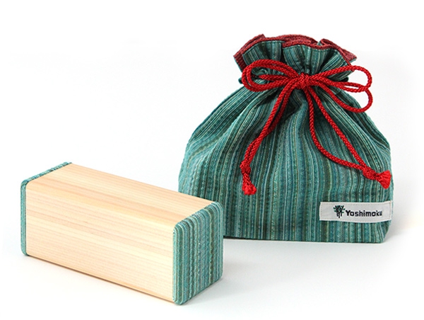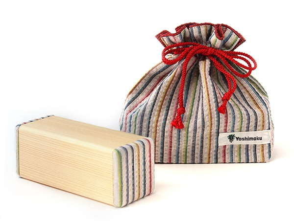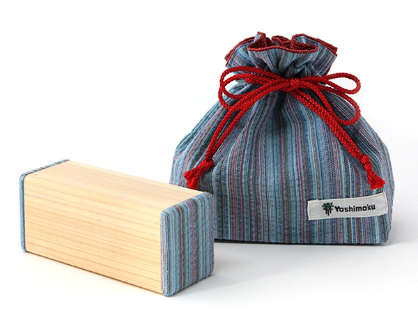 阿波しじら織りをあしらったカラフルな「しじら檜スピーカー」。阿波しじらは、徳島の誇る伝統工芸のひとつで、縦糸の張力差を利用して、独特なしわを出すのが特長です。各スピーカーには、持ち運びに便利な同じ柄の巾着袋が付属します。贈り物としても喜ばれる一品です。